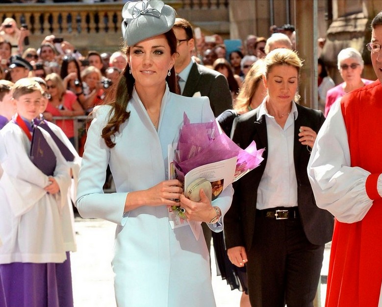 Catherine de Cambridge, dont l’une des missions est de promouvoir le savoir faire britannique, fait confiance au studio Alexander McQueen, dirigé de main de maître par la talentueuse Sarah Burton. Bien qu’elle ne sélectionne ou ne commande sur-mesure que des pièces royalement correctes; il y a des survivances du génie d’Alexander dans la tournure des robes et des manteaux qu’elle étrenne. Leurs lignes sobres et élancées donnent de la force et de la majesté à la duchesse.
