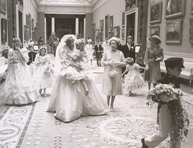 Quant à ce mariage, ce fut le mariage du XXème siècle. Nous avons regardé sa descente du carrosse, nous avons observé sa timidité, mais elle a assuré et Diana reste pour certaines ladies la Princesse des Coeurs et l’unique English Rose…..Aujourd’hui encore, en écrivant “ces quelques phrases” (oui la Rose est bavarde), la tristesse est encore là. Elle a bousculé le protocole, porté des robes fendues, une robe-Elvis toute pailletée, dansé le rock, et devant le Tāj Mahal, elle était bien seule. Elle a ébloui toute une génération et je remercie Lynda de lui rendre hommage au travers de ces photos inédites. Si je pouvais, je monterais les enchères pour la photo en noir et blanc (Diana et sa petite demoiselle d’honneur). Voilà, le 29/07/81 j’étais devant mon écran car une grande (et belle jeune fille) allait marquer toute une génération de femmes bercées par des rêves de Princesse…