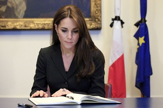 La reine Elisabeth a adressé un témoignage de sympathie au président Hollande. Le prince de Galles a observé une minute de silence à la mémoire des 129 victimes et de leurs familles. Aujourd’hui, Kate et William ont signé le livre de condoléances à l’ambassade de France.
