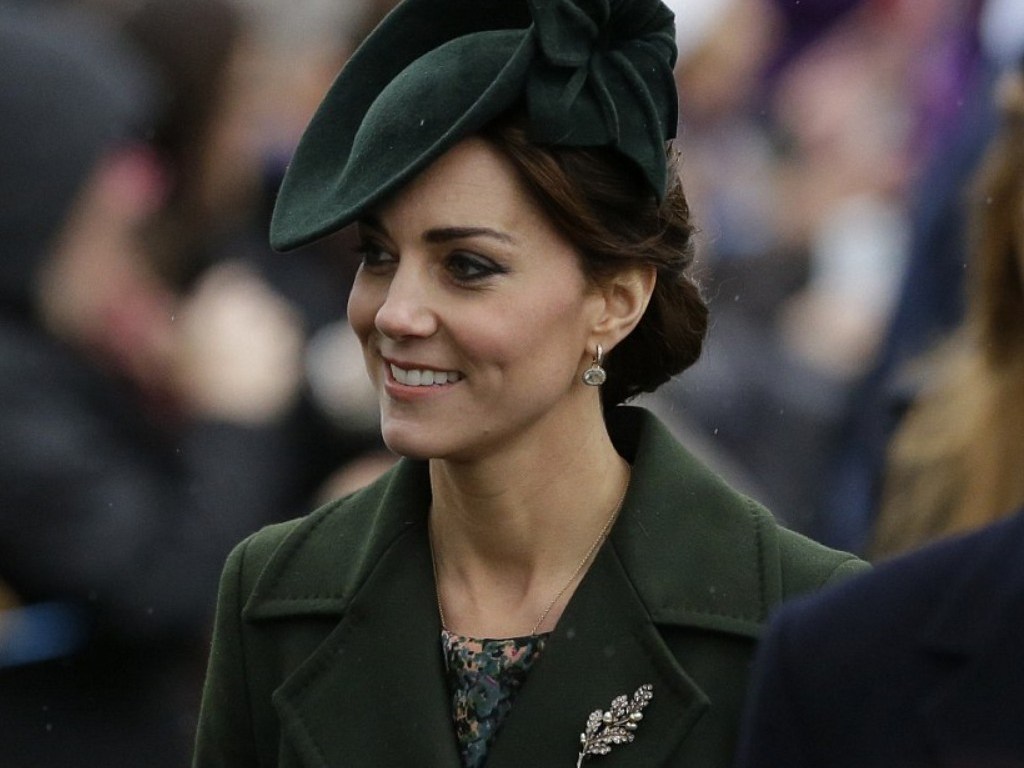 La duchesse de Cambridge était en vert sapin, une couleur de circonstance. Sur le revers de son manteau, elle étrennait une broche en perles et diamants, aux armes des Middleton.