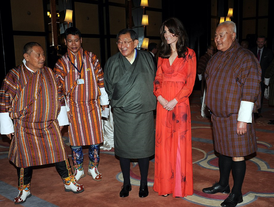 Tout ce petit monde élégant a échangé, et Kate a montré sa dernière robe de soirée Beulah-une marque londonienne qui travaille de concert avec des femmes indiennes victimes de trafics sexuels-à son fan club. De la mousseline de soie imprimée de coquelicots, la fleur nationale du Bhoutan…ultime hommage de la duchesse au pays qui lui a réservé un accueil digne de celui d’une reine.