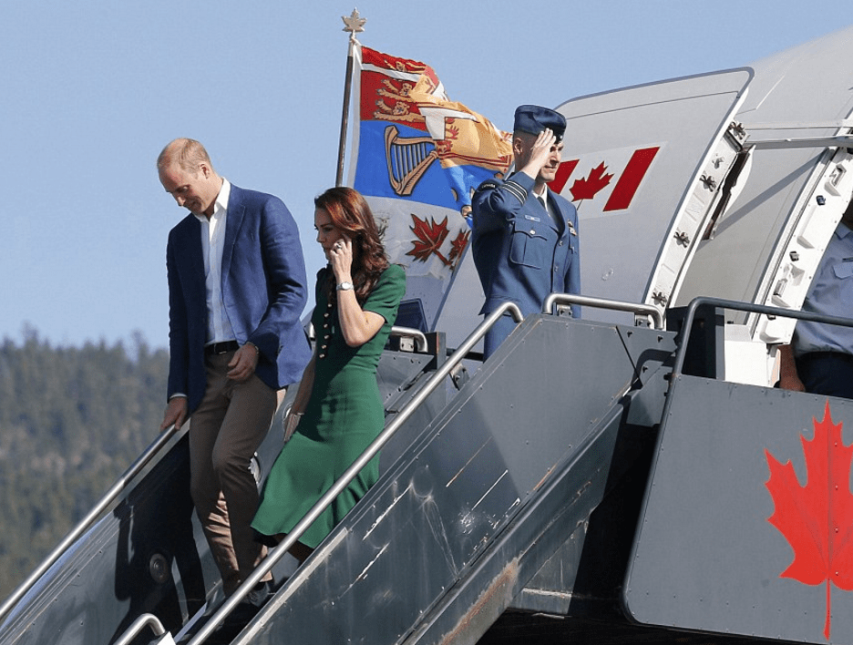 4. Je pense que cette robe va faire couler un peu d’encre. Avec son look sage bien boutonné, en accord avec les teintes automnales, je trouve que c’est un bon choix. Et ce pays, réellement dépaysant, a vraiment beaucoup de charme. Merci Lynda ! De ce voyage, nous en avons (grâce à vous) plein les yeux ! J’ai ri ce soir en voyant une vidéo de George à son arrivée au Canada. Très drôle ! Il a littéralement snobé Justin Trudeau (et l’a même regardé avec une certaine condescendance) qui, un peu familièrement et à la manière américaine, a voulu lui serrer la main, ou plutôt lui taper dans la main. Mais George ne mange pas de ce pain-là ! On est aristocrate ou on ne l’est pas ! Bon sang de la reine Elizabeth ne saurait mentir !