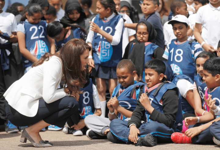 Sur place, la marraine de 1851 Trust retrouve quatre groupes de scolaires. Elle participe à une chasse aux trésors éducative et prête une oreille attentive à l’un des thèmes abordés: les ravages du plastique dans les océans. Combien de voitures avez-vous? demande une élève à la marraine royale, lors d’une discussion sur l’environnement. Kate éclate de rire. Heureuse comme un poisson dans l’eau, la maman de George et Charlotte aime travailler au contact des enfants. Elle apprécie leurs échanges spontanés et la bonne humeur qui se dégage de ces rendez-vous informels. La tenue du jour hisse les couleurs de la croisière. Bleu marine et blanc: un blazer et un pantacourt à pont. Demain, jour du Salut aux Couleurs, la duchesse de Cambridge reprendra sa place dans la calèche et les petits Cambridge se montreront au balcon royal.