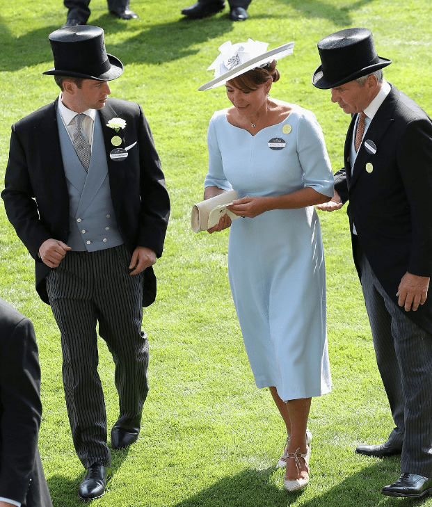 My Fair Lady. Les équipages royaux sont avancés. Le duc, la duchesse de Cambridge prennent place dans le troisième landau. Ils voyagent en compagnie du comte et de la comtesse de Wessex. La reine et le prince Philip ouvrent le bal. Les cochers conduisent le beau monde aux courses d’Ascot. Le cortège n’a qu’une courte distance à parcourir. Quelques kilomètres séparent le château de Windsor de l’hippodrome. La descente de voiture de Sophie de Wessex fait rire Kate aux éclats. La comtesse trébuche et s’agrippe à la duchesse. Celle-ci la réceptionne in extremis. L’incident ravit les correspondants de presse et les photographes…