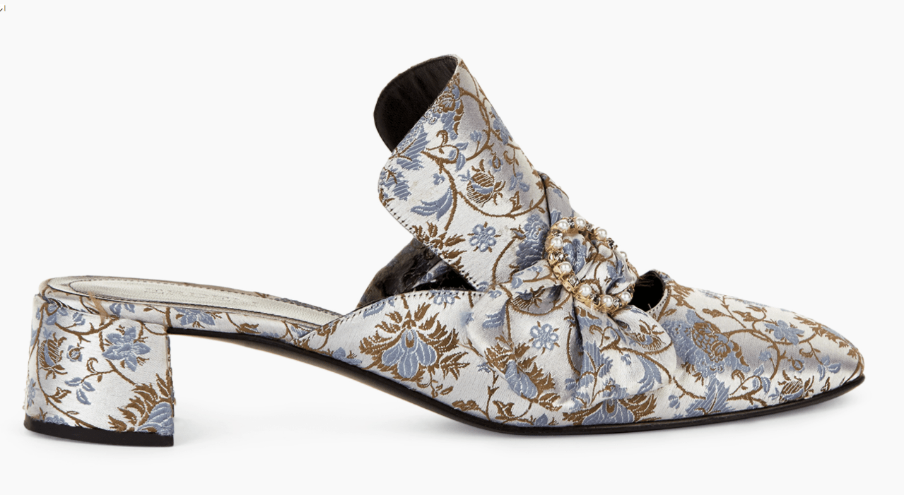 Il était une fois les pantoufles de contes de fées. Ces souliers de satin au charme suranné vont régner sur l’été. Marie-Antoinette les aurait commandé d’un clic. Célèbre pour ses imprimés à fleurs ou à ramages, Erdem a habillé ses mules d’une étoffe inspiration XVIIIe. Les Addison sont idéales à glisser sous une robe d’apparat, à porter avec un slim ou une robe fine, puisque les mules sont en vogue cette saison. Elles font le pied léger et enchanteur aux princesses du gotha. Une alternative royale aux escarpins.