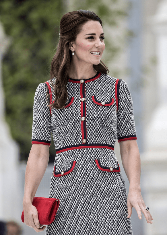 Une très jolie tenue esprit “Chanel”, moderne et qui va très bien à la duchesse qui est très souriante!