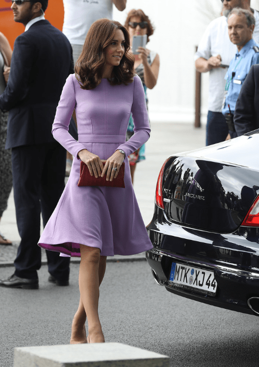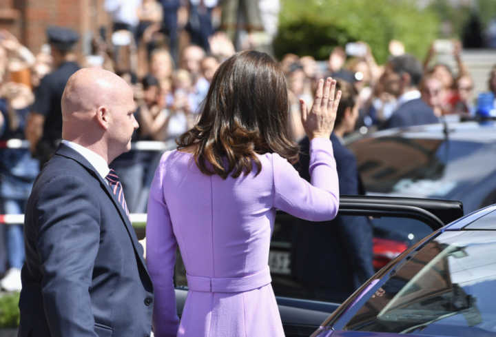 Une question brûlait les lèvres. Verra-t-on Kate en Jil Sander? La duchesse n’a rien commandé chez la styliste germanique, réputée pour son esthétique minimaliste et son color-block. Aujourd’hui, elle portait une robe lilas Emilia Wickstead.
