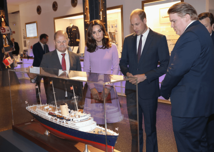 En gare de Berlin, les têtes des usagers se tournent. Et pour cause! Les Royals prennent le train pour Hambourg sous bonne escorte. Ils se rendent au musée maritime international afin de célébrer l’année scientifique germano-britannique. Les deux nations se sont engagées pour préserver les océans et sensibiliser l’opinion. Lors de sa récente prise de parole, la marraine du musée d’histoire naturelle évoquait la beauté des fonds sous-marins et leur dégradation. “C’est le bateau de grand-mère”! s’exclame le prince William en découvrant la maquette du Britannia.