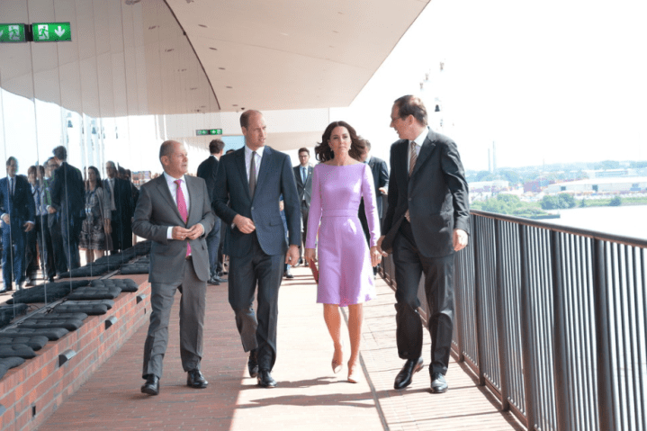 C’est à Hambourg que s’achève la tournée royale. Heureusement pour eux, la ville est redevenue beaucoup plus calme. Elle fut le siège d’affrontements d’une rare violence en marge du G20. Le duc et la duchesse n’attirent pas le même public…