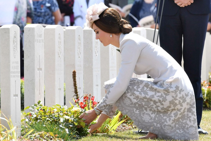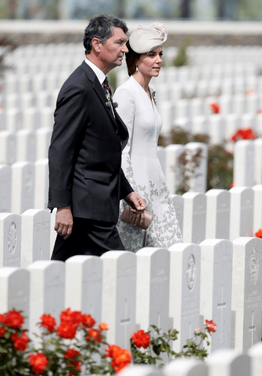 Ce cimetière de guerre britannique est le plus grand au monde. Il abrite un mémorial dédié aux 32,000 soldats inconnus originaires de Grande-Bretagne et de Nouvelle-Zélande. Avant de commencer la visite, la duchesse s’entretient avec l’équipe des accueillants de la CWGC. Nombreux sont les visiteurs qui ont réservé leurs tickets.