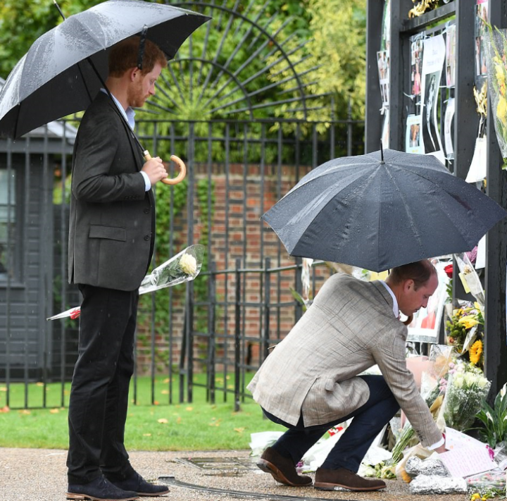 Les Royals en font le tour, accompagnés par le jardinier en chef. Les fleurs préférées de Diana y ont été plantées. Elle aimait les roses blanches et le muguet, les tons jaunes pastels et les roses poudrés. Les fleurs n’ont qu’une seule couleur: blanc. Ouvert au public, ce nouveau lieu de mémoire se visite gratuitement. Une statue sera érigée d’ici la fin du mois de septembre. Pendant que William, Harry et Kate vont dans les allées abrités sous un parapluie, des inconnus se recueillent derrière les grilles. Certains d’entre eux ont parcouru des milliers de kilomètres pour se recueillir un instant. Pont de l’Alma ses admirateurs aussi se sont réunis. A leur tour, les héritiers se rapprochent de l’entrée du palais. Ces grilles leur sont familières. Elles sont liées à jamais à la tragédie. Il y a vingt ans, les fils de Diana regardaient, mutiques, les posters, les cœurs, les ballons et les petits ours. Ne pas montrer ses émotions, dixit la maxime des Windsor. Aujourd’hui, ils déposent un bouquet remis par la foule, et contemplent, émus, les autels dressés à la mémoire de Lady Di.