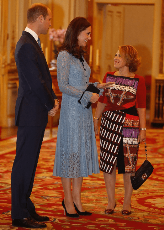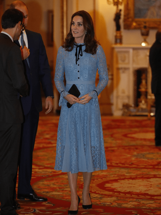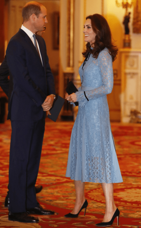 La duchesse se déplace d’un palais à l’autre. La scène se passe dans les salons de Buckingham. Enceinte de douze semaines et encore souffrante, Kate effectue un come back ultra médiatisé. Elle fait acte de présence mais n’a pas encore vaincu les démons de l’hyperémèse gravidique. C’est ce qu’assure un aide de camp de la maison royale. On devine le pas chancelant et le mari très attentionné. Aux dires de William, les nausées sont plus coriaces que les précédentes.