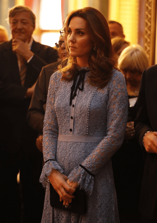 The Duchess is back. Cette réception dans les dorures monarchiques, marque la première apparition en public de la convalescente, depuis l’annonce officielle de sa grossesse, le 4 septembre dernier. Kate est restée assignée à résidence pendant plus d’un mois. La porte-parole et marraine de la santé mentale fait coïncider sa venue avec la célébration de la journée mondiale des troubles psychologiques.