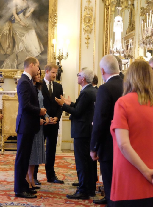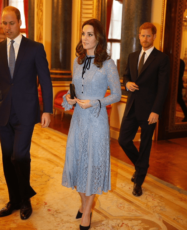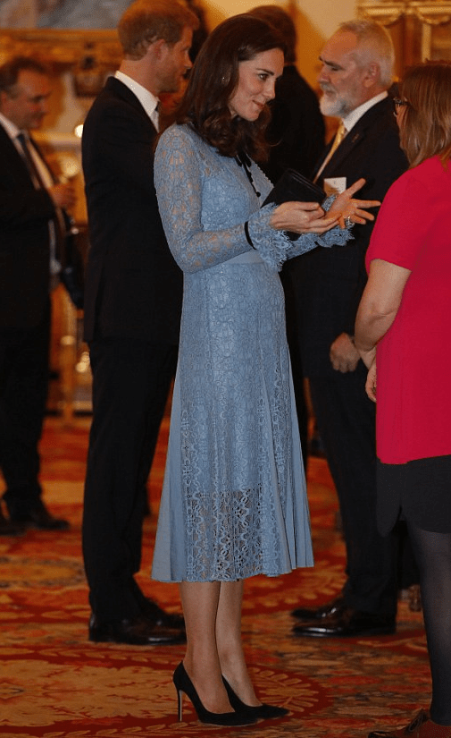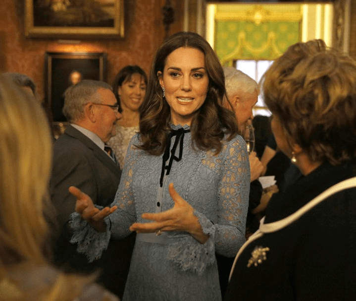 Kate, William et Harry réunissent et remercient 350 représentants de la santé mentale qui œuvrent sur l’ensemble du Royaume-Uni. Engagés, soudés, les Royals multiplient les interventions, ouvrent le débat à l’échelle internationale pour dé-stigmatiser les maladies mentales. Numéro un sur la liste de leurs priorités, cette cause occupe leur espace caritatif. Marathon, discours, interviews, radio/ presse, videos, ils exploitent tous les supports afin de diffuser le message et de toucher les esprits. Avec le concours de la campagne Heads Together, il font tomber les tabous et invitent au dialogue. De concert avec la Fondation Royale, le prince Harry étend le dispositif aux Forces armées britanniques. Dans ses allocutions, Theresa May salue le travail accompli par le triumvirat. Les actions devraient s’intensifier en 2018. Pour fêter l’événement, le champagne pétille mais la future maman trinque aux cocktails sans alcool. Les félicitations faîtes aux invités, ses paroles disent combien elle est contente de pouvoir reprendre un semblant d’activité.
