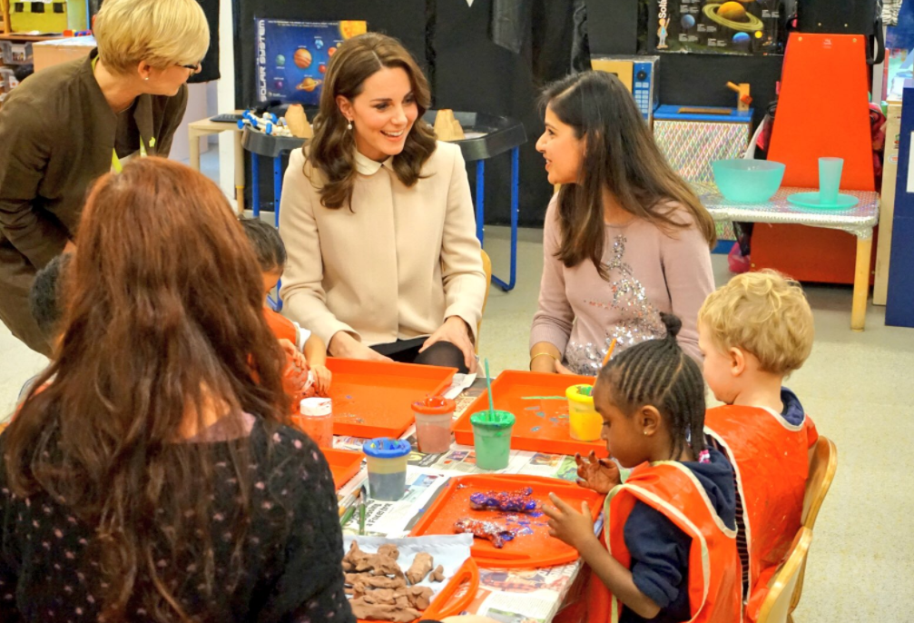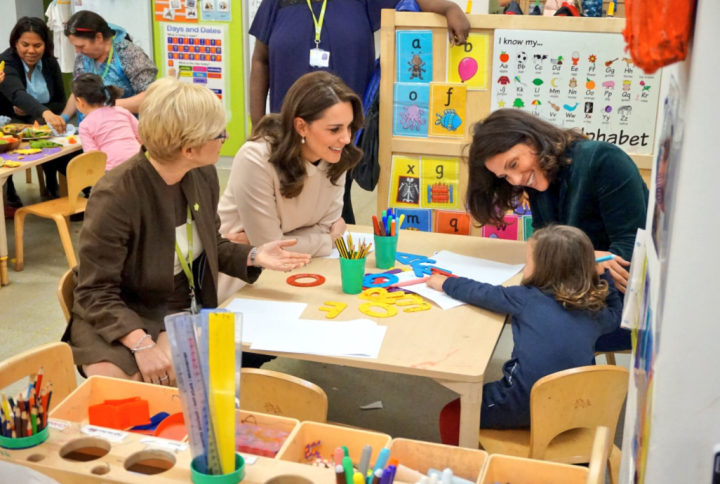Deux mois ont passé. Kate revient à cette adresse, épanouie et apaisée. Son déplacement s’inscrit dans le cadre de la campagne pour la santé mentale maternelle, qu’elle a souhaité ajouter à sa mobilisation pour le bien être psychologique. Autour de la table ronde réunie par ses soins, la duchesse de Cambridge mis l’accent sur la dépression post-natale et son impact sur l’épanouissement familial.
