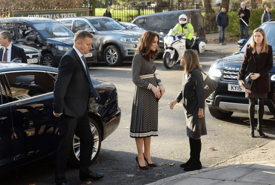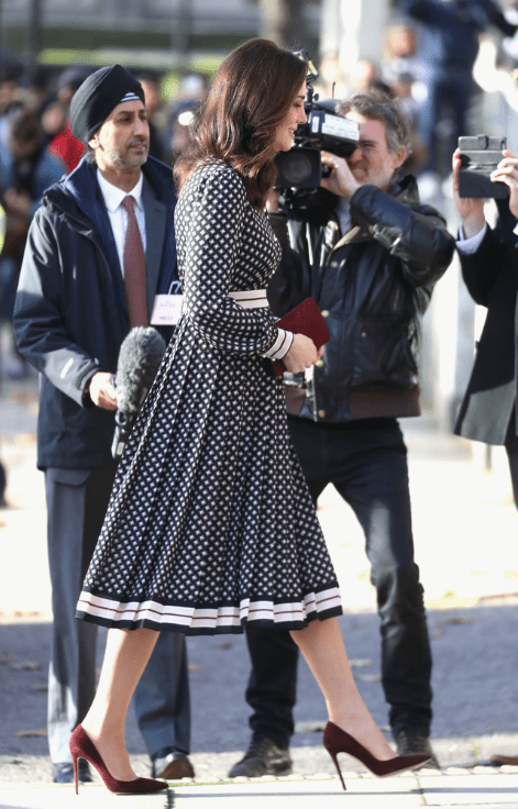 17. Les chaussures sont très élégantes et Kate a un beau sourire. Cependant, la robe ne met pas vraiment en valeur les jolies jambes de la duchesse et brrr des collants chairs en plein hiver (5° à Londres aujourd’hui)