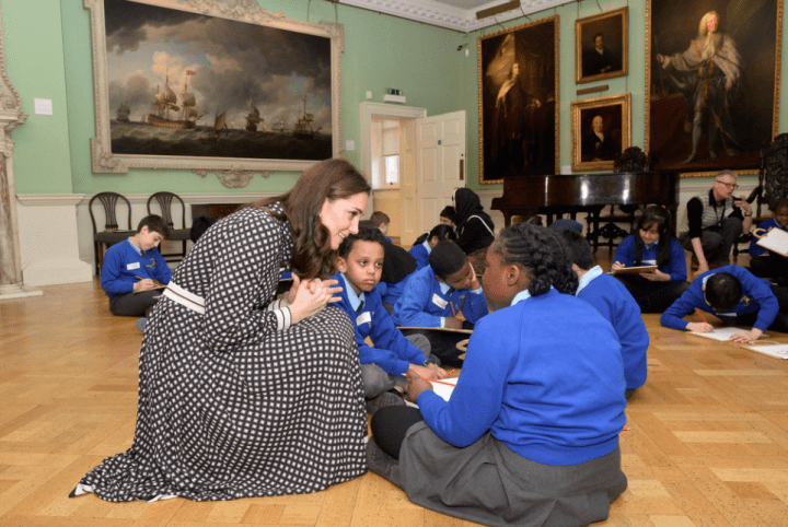 14. J’aime cette robe et les accessoires qui l’accompagnent. Kate doit être dans son élément : elle associe deux sujets qui lui tiennent à cœur : les arts et les enfants.