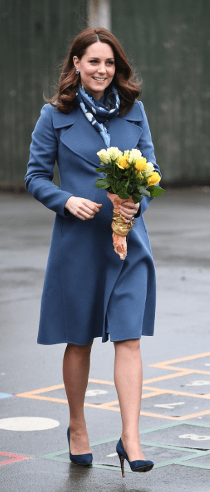De jolies bottines cognac auraient été jolies à regarder aussi mais Kate a du lire enfant sur l’emballage d’une poupée barbie qu’une princesse portait des escarpins quoi qu’il arrive, elle ne sort pas de là.