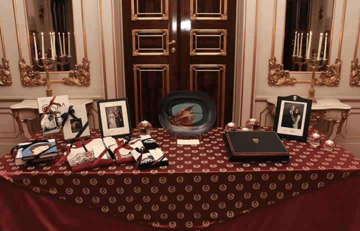 Mais qu’ont-ils offert en échange ? Hum, peut-être cet improbable revêtement de table basse qui trône au milieu de leur salon… Kate pourrait s’en faire une robe de soirée pour la prochaine visite !