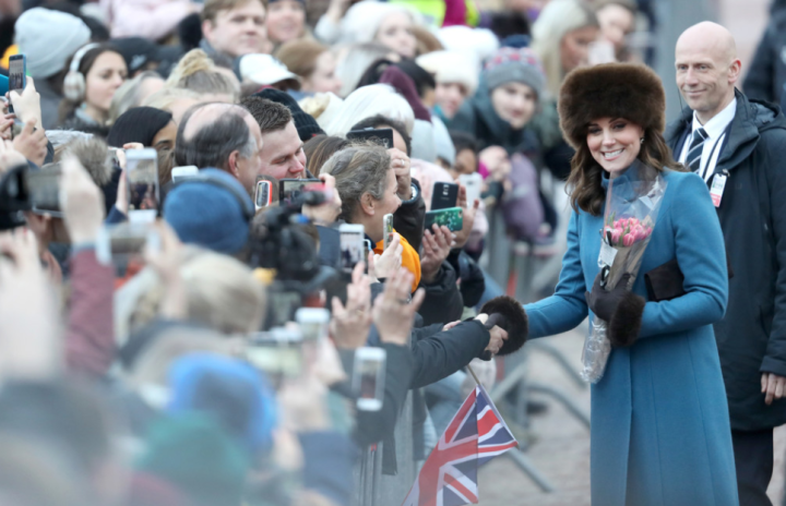 Le manteau bleu va très bien à Kate. La robe Séraphine est jolie. Kate reste fidèle à ses goûts, classique, simple, indémodable… mais au final ennuyeux.