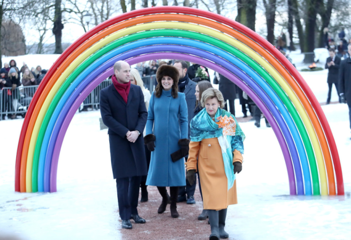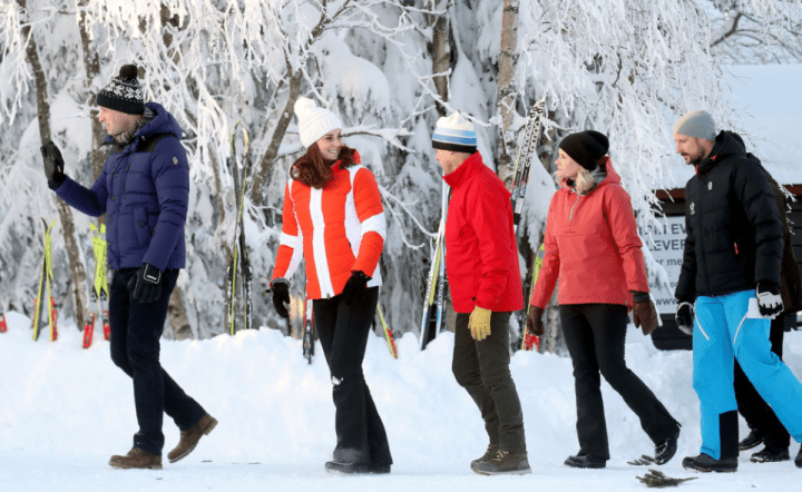 J’ai particulièrement apprécié l’accueil simple mais chaleureux de la famille royale norvégienne : le Roi a été prévenant , la Reine m’a conquise quand elle les a accompagnés dans le parc , bottes en caoutchouc aux pieds et d’orange vêtue . J’ai aimé Mette-Marit , son style minimaliste , elle assume ses formes . Et c’est en Norvège que Kate s’est transformée en Reine des Neiges pour un soir .