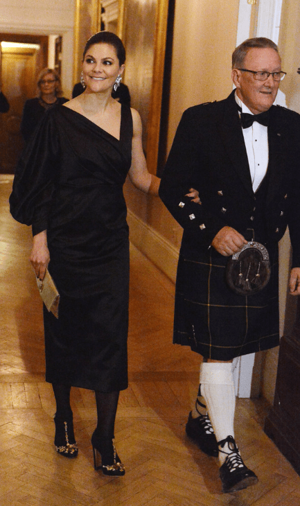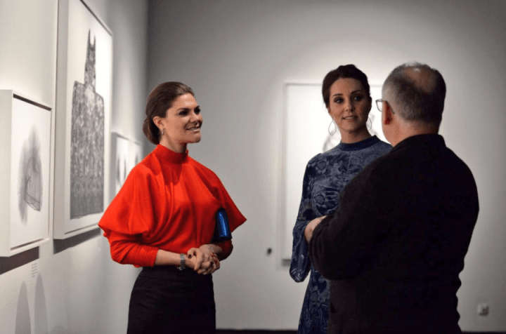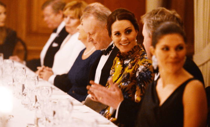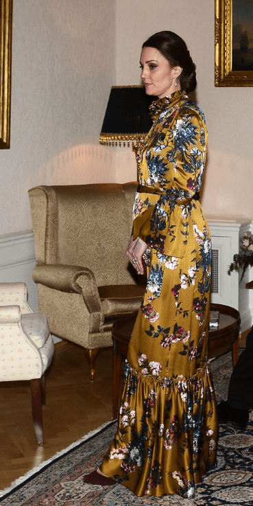 Les invités de la soirée de l’ambassadeur se pressent aux portes de la résidence. La duchesse pénètre dans le salon au bras du représentant de Sa Majesté. Victoria porte une robe noire faussement sage qui  lui dévoile l’épaule. Kate, elle, ne montre rien. Les fleurs et le fond de sa robe Erdem rappellent les couleurs de l’étendard national. La toilette n’est pas épargnée sur les réseaux sociaux. Les internautes la comparent à un rideau de grand-mère…