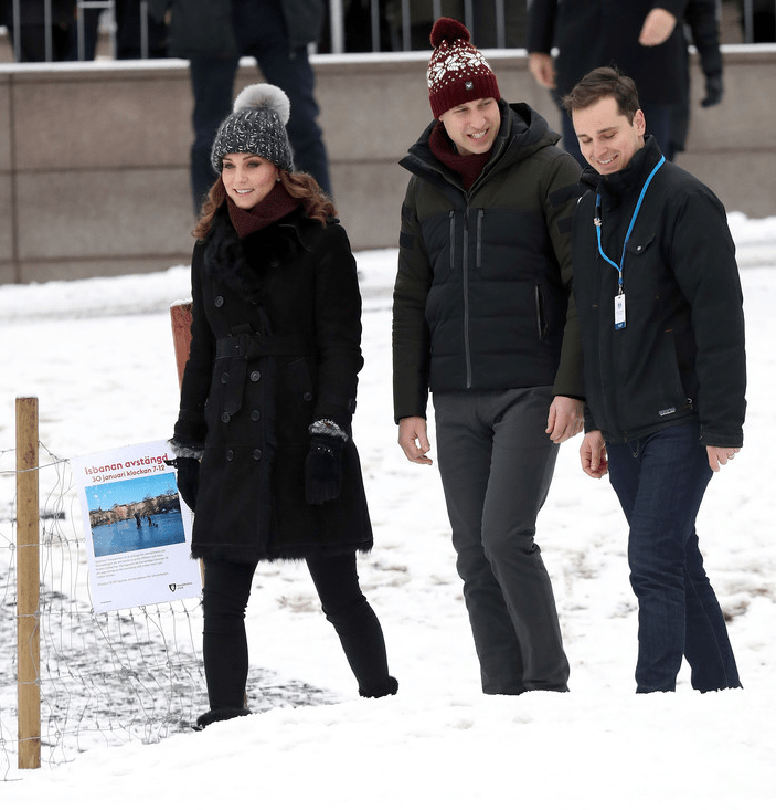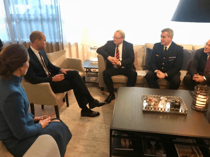 Le duc et la duchesse s’entretiennent une dernière fois avec le ministre de la défense et les officiers des forces armées. La duchesse a déjà sur elle le manteau Catherine Walker que les norvégiens découvriront bientôt. La neige change le plan de vol. Le jet ne décolle pas de la base initiale. Pendant le voyage, des avions de chasse suédois exécutent des acrobaties. Kate et William les contemplent à travers les hublot. Les amoureux se regardent et se disent qu’ils aimeraient dévaler les pentes suédoises. Une classe de neige avec George, Charlotte est le troisième bébé?