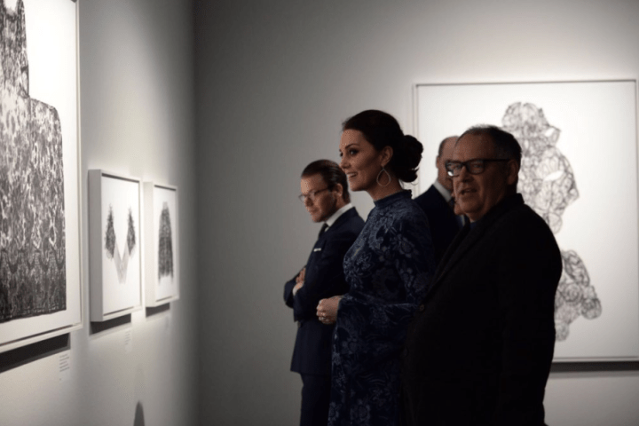 Le grand magasin NK met le design et la mode de Grande-Bretagne en vedette. Les globe-trotteurs inaugurent l’exposition. Tea time. Victoria offre le goûter à ses hôtes. Le rendez-vous est donné au palais Haga, la résidence officielle de l’héritière. Le couple princier présente Estelle et Oscar aux parents de George et Charlotte. La méthode Montessori anime la discussion: la princesse Estelle fréquente un établissement spécialisé. Ces dames se retirent dans leur boudoir pour se refaire une beauté. A la nuit tombée, William et Kate embarquent pour une traversée en bateau, l’occasion idéale pour voir Stockholm by night et sous la pluie! A la galerie d’art contemporain, ils retrouvent leurs interlocuteurs privilégiés. La duchesse s’attarde devant les photographies exposées. Les deux couples se font leurs adieux. Ils se disent au revoir et à très vite.