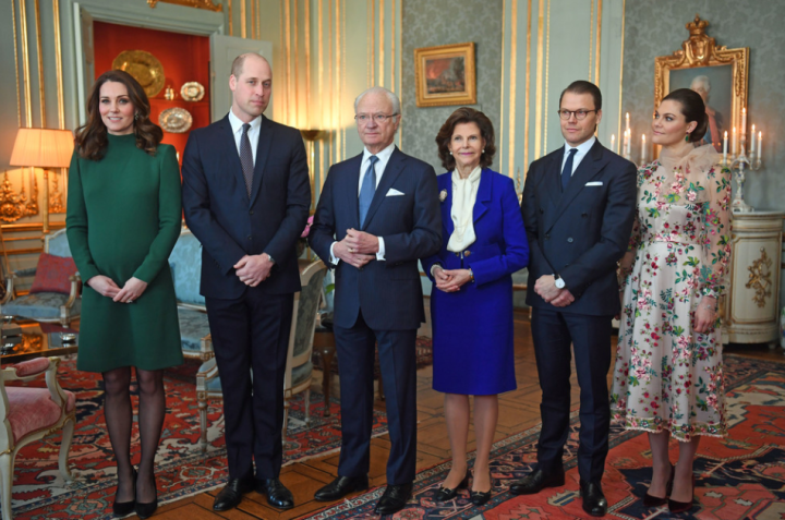 Au château de Drottningholm, Carl-Gustaf XVI réquisitionne les siens pour former la haie d’honneur. Le couple souverain et les Royals se figent pour le traditionnel portrait de cour. Une photo ancienne du souverain et de la reine d’Angleterre trône sur une commode. Le monarque a pensé que sa fille et son gendre feraient d’excellents guides. Les deux couples ont sensiblement le même âge et sont appelés à régner. C’est l’occasion pour Kate de faire plus ample connaissance avec la princesse héritière Victoria et le prince Daniel. Ils ne se sont pas revus depuis le mariage du siècle.