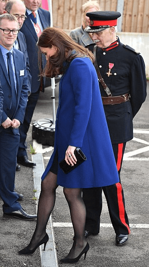 Kate est encore une fois superbe dans ce manteau bleu. C’est tu assez choquant de reste le talon de nos beaux escarpins pris dans une grille 😦