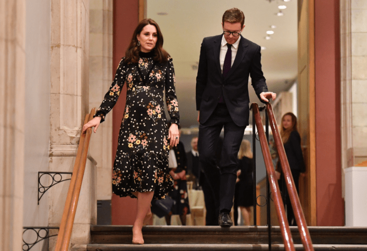 La nuit londonienne bat son plein. Dans les pubs, les britanniques refont le monde. A la National Portrait Gallery, le personnel guette l’arrivée de l’escorte princière. La marraine royale revient hanter les lieux. Elle inaugure l’exposition Géants victoriens: La naissance de l’art photographique, qui se tient du 1er mars au 20 mai 2018. Kate fait son entrée sous une bruine neigeuse. Elle défie la météo dans une robe à fleurettes Orla Kiely. Heureusement qu’elle n’a que quelques mètres à parcourir. Il fait meilleur à l’intérieur: ambiance feutrée, cocktails, mondanités et petits fours.