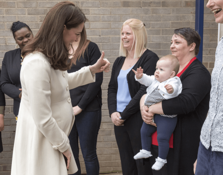 Le cortège se fraye un passage dans les rues d’Oxford où se déroule la visite princière. La portière s’ouvre et une première information est propulsée sur les réseaux sociaux. Il s’agit de la marque du manteau que porte Kate: Jojo Maman Bébé. Des accessoires marrons ponctuent le look du jour. A l’entrée de l’école, les élèves en uniforme la saluent. Derrière le dispositif de sécurité, d’autres petits coiffés de couronnes en carton, accueillent la princesse des enfants en brandissant le drapeau britannique. Même le bébé dodu, que lui présente une mère, lui adresse un geste de la menotte. La visiteuse reçoit un bouquet de tulipes, des jonquilles et un recueil de poèmes et de berceuses écrits par la classe, à remettre à George, Charlotte et à l’enfant qui viendra.