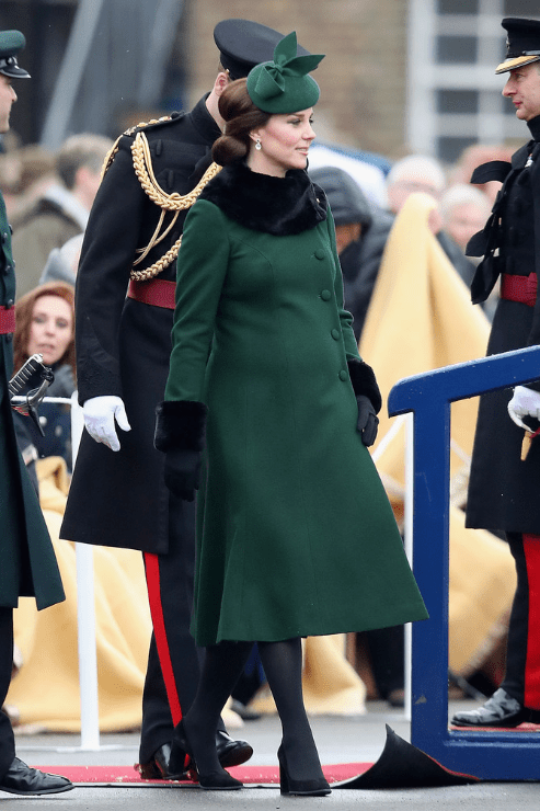 10. La Saint Patrick va bien à la duchesse. Elle porte bien le vert et j’aime toutes ses tenues pour cette occasion. Ici, si j’aime l’ensemble de ses accessoires, bibi et manteau compris, l’ensemble a un petit côté rétro dont je ne sais que penser, si ce n’est que le manteau était effectivement mieux porté il y a un mois et que le chignon de profil n’est pas particulièrement harmonieux. Par contre, quelle belle mine ! Un beau couple.