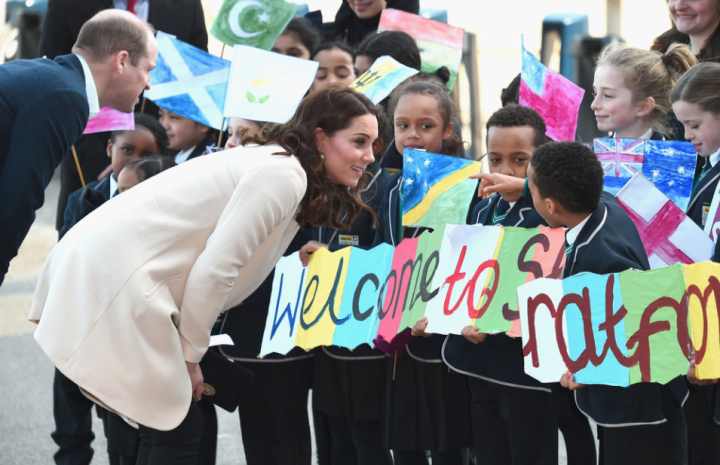 Le couple princier se retrouve pour couvrir deux engagements consacrés au Commonwealth, et ce en lien avec à la réunion des chefs de gouvernements du Commonwealth (CHOGM) qui se déroulera en avril. Le premier rendez-vous se tient à l’Olympic Park de Stratford. Les sportifs rattachés à SportsAid, association dont la duchesse de Cambridge assure la présidence, disputent une partie de basket en fauteuil.