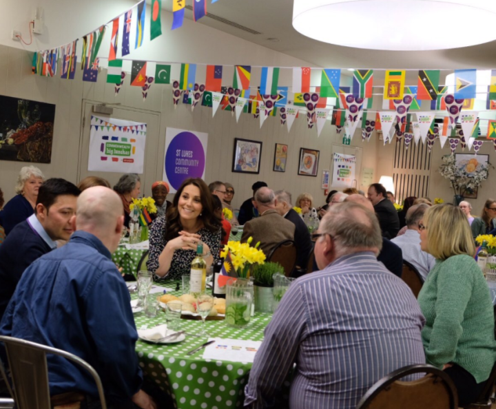 Monsieur et madame Cambridge sont attendus au centre communautaire St Luke. Là-bas, on prépare le lunch géant du Commonwealth. Le centre offre plusieurs activités à la population locale: cours de cuisine, conseils en nutrition et lutte anti-gaspillage. Fanions, nappes à pois blancs, bouquets de jonquilles, l’atmosphère chaleureuse des lieux a tout pour plaire aux visiteurs royaux. Le duo princier s’attable et discute avec les bénévoles. Les Cambridge passent ensuite en cuisine. Kate craint le pire car elle n’a pas épousé un cordon bleu!