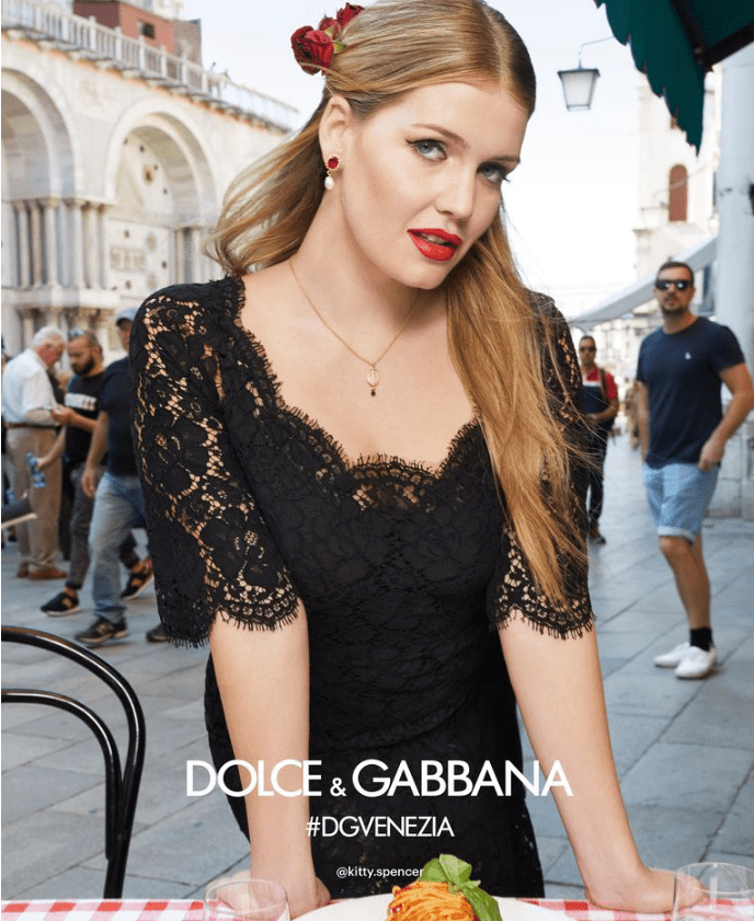 Si les princes épousent des bergères, les enseignes de mode recrutent leurs égéries dans le sérail de la gentry. Sur l’estrade Dolce&Gabbana, deux clans s’affrontent. Windsor vs Spencer. C’est le choc des ladies. Les jeunes filles de grandes familles font vendre et rêver. Lady Kitty reprend le flambeau du mannequinat. Quand elle ne s’assoit pas au premier rang, la blonde gironde défile pour la marque italienne. Ses quartiers de noblesse et son teint de porcelaine font les jours heureux des collections. Dans une interview accordée au magazine You, la rose anglaise déclare ne pas posséder de balance dans sa salle de bain. L’icône des podiums impose ses formes pulpeuses à côté des tops transparents. Bulgari la courtise et lui fait signer un contrat d’exclusivité.