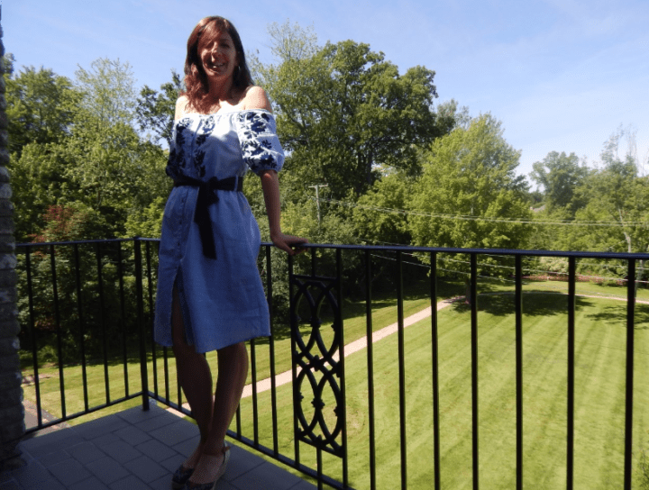 Vous êtes vraiment une très belle femme, avec beaucoup de classe, et cette robe vous va à ravir. Quelle allure, quelle joie de vivre dans ces quelques clichés ! Je n’ai pas eu la même chance chance que vous pour la première robe, mais je me suis rattrapée sur la deuxième… si j’osais, je vous inviterais bien avec d’autres lectrices à faire nos Ladies à la façon Marie-Antoinette au hameau de la Reine, après votre retour en France … je ne sais pas si la rénovation a prévu de mettre quelques moutons ou oies dans les jardins, mais nous saurons adopter la démarche élégante des dames du temps jadis …