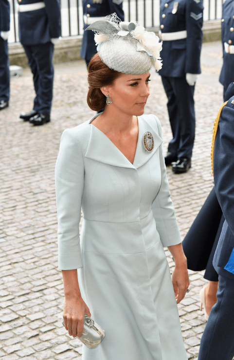 Je trouve Kate absolument magnifique dans ce manteau bleu glacier. Sa tenue est certes classique mais je la trouve parfaite. J’aime le chignon, le chapeau et l’insigne de la RAF est du plus bel effet au revers du manteau. Elle a vraiment l’allure d’une reine.
