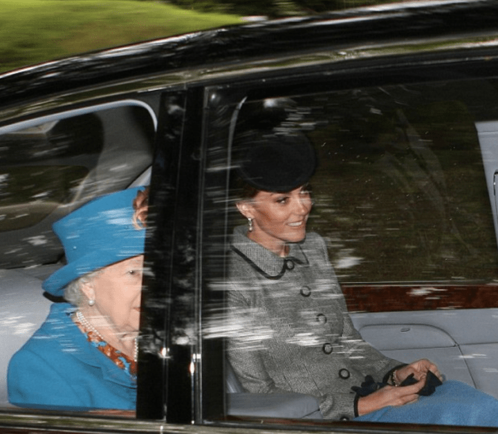 Aujourd’hui, il y a foule sur le perron. La duchesse de Cambridge se montre enfin. Sa dernière apparition publique date de la cérémonie du baptême de Louis. La reine, le prince héritier William et la princesse du Royaume-Uni prennent place à bord de la Bentley. Un chauffeur les convoie à l’église locale. A Kate revient la place d’honneur. Elle est assise à côté de la souveraine, tandis que son cher et tendre voyage près du conducteur. Certains y voient une montée en puissance de la future reine. Un plaid bleu recouvre les genoux des passagères. Mrs Cambridge a emporté ses gants Cornelia James, preuve que la température se rafraîchit dans ces contrées. Cerise sur le pudding, un calot de feutre agrémente la toilette du jour: un manteau hivernal à col rond (Catherine Walker). La future reine le porte sur sa peau bronzée. Aucun signe des petits loups dans les parages. Ils sont restés au château.