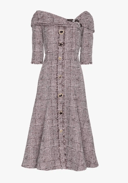 Au début quand j’ai vu robe Erdem, je me suis dit : “aïe, aïe, aïe”. Mais je trouve la robe magnifique. Je suis réconciliée avec Erdem. Tout me plait : le décolleté dans le dos, la longueur des manches, le col… Je suis fan du motif prince de Galles. Il faut vraiment que je me trouve un manteau avec cet imprimé pour cet hiver…