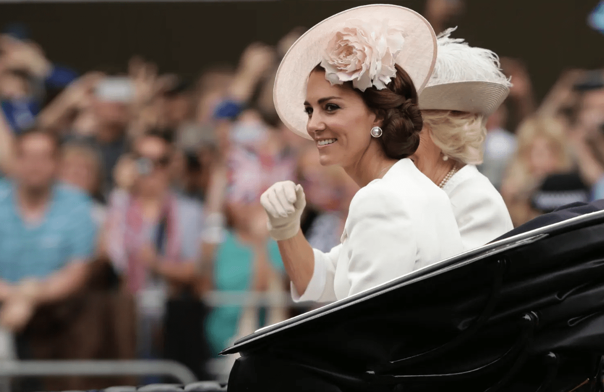 hum… je me demande si le faible score de Kate au sondage ne serait pas imputable à son époux. Jeune homme, William nous faisait rêver mais c’est de moins en moins vrai. En ce qui me concerne tout au moins. Pour positiver: J’aimais beaucoup le chapeau de Kate sur la dernière photo, dans la calèche. Et la couleur de ses cheveux aussi: ce marron clair ultra brillant s’harmonisait parfaitement avec le rose pâle de la fleur.