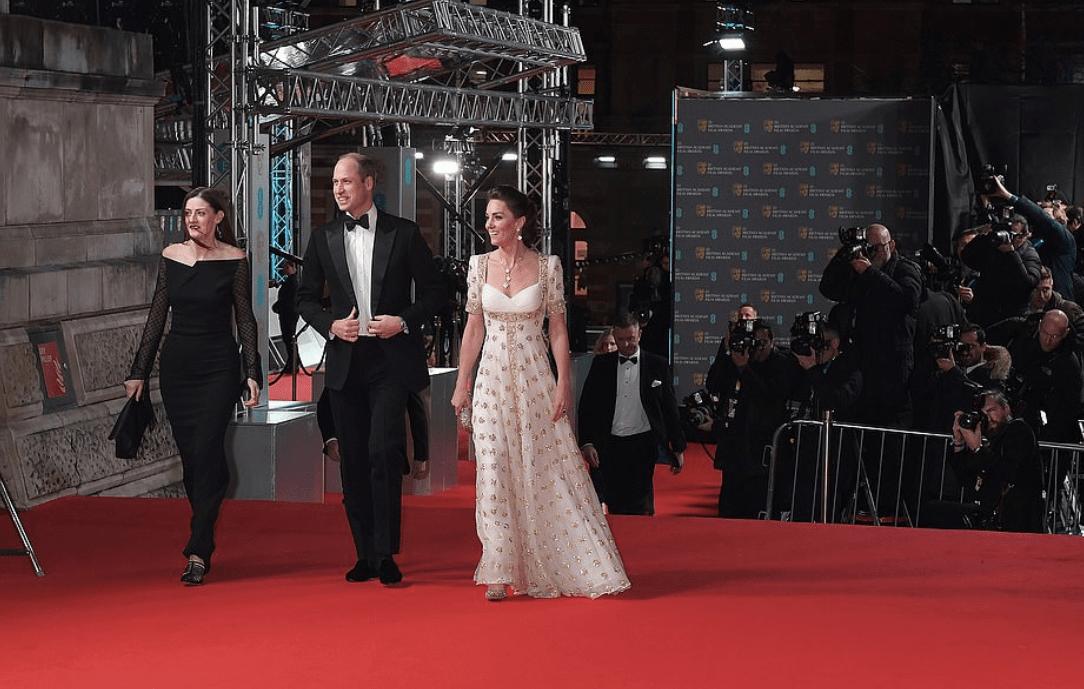 Le Royal Albert Hall theater a mis ses habits de lumière. Ce dimanche 2 février, Londres couronne les stars du grand écran. Le prince William, président d’honneur de l’académie des BAFTA, l’équivalent des Oscars, officie en tant que maître de cérémonie. Son épouse, sacrée reine du glamour, l’accompagne. L’étoile des Windsor côtoie celles du septième art. Elle les éclipse. Pendant que Kate se prépare, William suit le match de rugby opposant la France à l’Angleterre et assiste à la défaite de son pays face aux Bleus. Dans le boudoir des appartements privés du palais de Kensington, la duchesse fait défiler ses robes grand soir. Elle a l’embarras du choix. Celle au décolleté asymétrique arborée l’année dernière reste dans la mémoire collective. C’est un gala cinématographique responsable. Les organisateurs de l’édition 2020 encouragent ces dames à remettre d’anciennes toilettes tapis rouge. Une solution très prisée à la cour d’Elisabeth II. Alors recyclons et donnons l’exemple! Mrs Cambridge se décide pour la mousseline de soie crème et or rebrodée de fleurs d’hibiscus, dessinée par Sarah Burton pour Alexander McQueen. La célèbre parure Alhambra rafraîchit la pièce déjà connue du public.