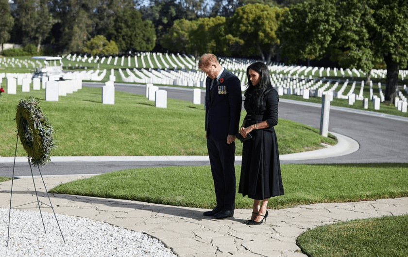 Pour la première fois de son histoire, la célébration se tient en l’absence de la foule. Les Britanniques sont invités à suivre les commémorations sur petit écran. Boris Johnson a mis le pays sous cloche. Seuls les commerces de première nécessité et les écoles restent ouverts. Elisabeth II et ses proches reviennent sous les feux de la royauté malgré le confinement. Le devoir de mémoire d’abord. Au balcon du ministère des Affaires étrangères et avec sa dame de compagnie Susan Rhodes, la souveraine regarde deux futurs rois fleurir en son nom le Monument aux Morts. Elle ne cache pas son émotion et essuie une larme. Reines en devenir, les duchesses de Cambridge et de Cornouailles occupent un balcon attenant. Le manteau militaire à épaulettes de Kate en impose. Les boucles d’oreilles en perles et diamants de la reine ornent ses oreilles. Aucun match des élégances ne l’oppose à sa belle-sœur. Sur l’autre continent, les Sussex apportent leur contribution en se recueillant au cimetière militaire de Los Angeles. Meghan a fait son devoir de citoyenne. Elle est le premier membre de la famille royale à voter.
