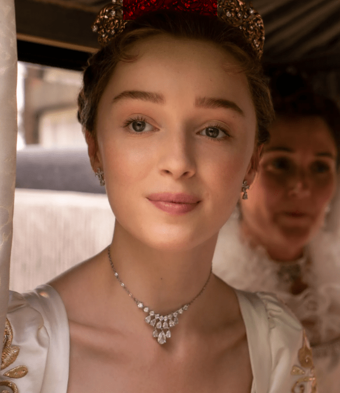 Bals des débutantes, bonbonnières anglaises, taille empire, diadèmes, le décor est planté. A Londres pendant la Régence (George IV remplace George III atteint de démence), les papillons aristocratiques jouent des ailes sur le marché du mariage, tandis que la mystérieuse lady Whistledown persifle allégrement.