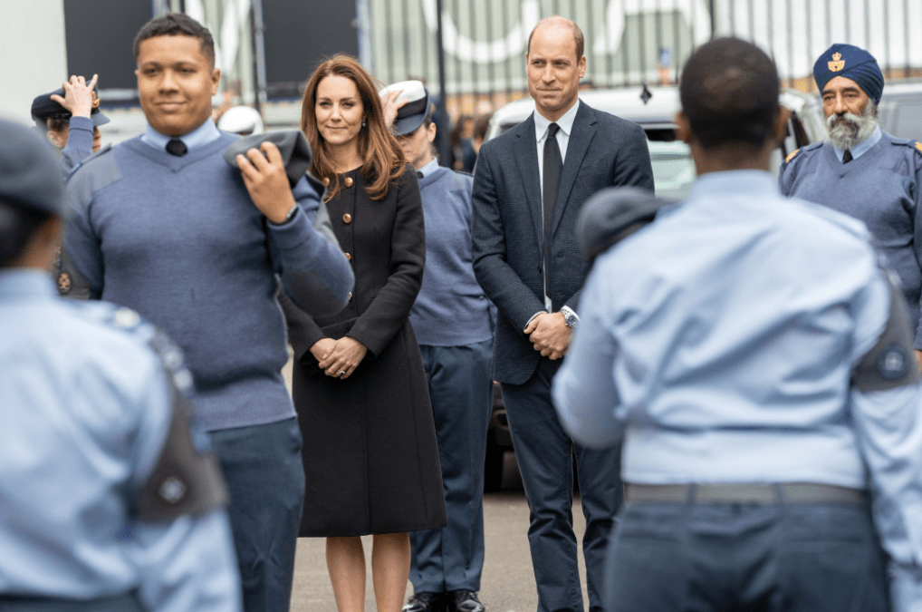 Kate et William retournent aux affaires le jour de l’anniversaire royal. La marraine des Cadets de l’Air et son époux couvrent une première mission en période de deuil. Le noir est mis.