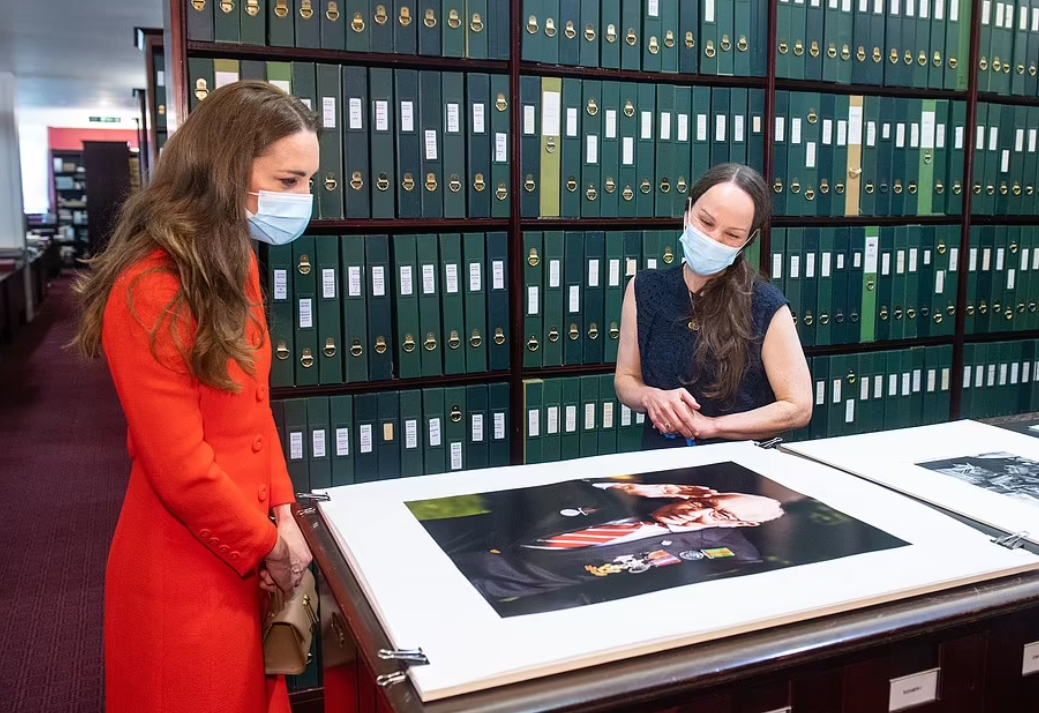A la National Portrait Gallery, musée auquel elle accorde son patronage, Kate a fait un saut au département archives où sont conservés les polaroids historiques. Elle a eu un pincement au cœur en découvrant le portrait de feu le Capitaine Moore, héros national décoré par la reine.