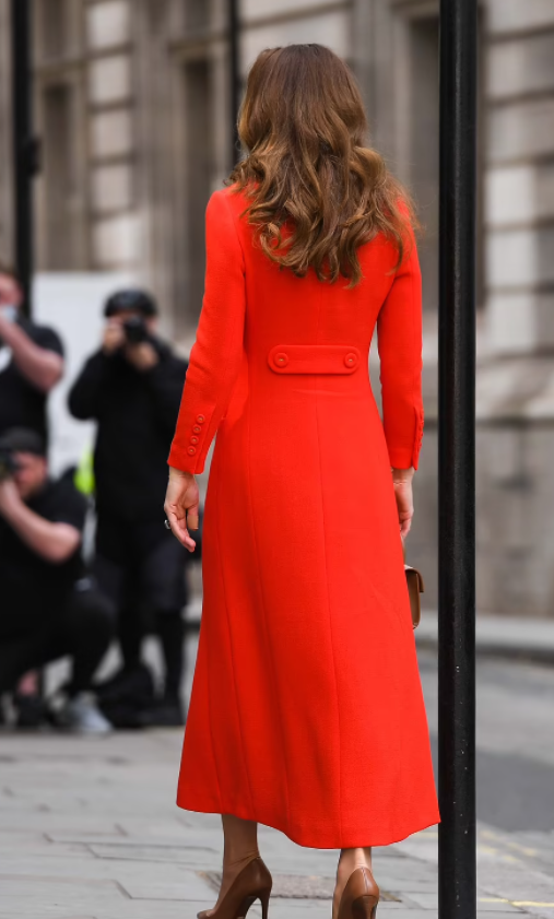 J’aime beaucoup la couleur coquelicot du manteau, couleur que Kate porte rarement.