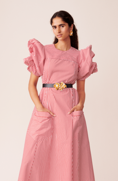 Eté 2021, Prune Goldschmidt dépose une garde-robe baroque aux pieds de la femme déesse-dandy; une sophistication à nœuds, à volants, ainsi qu’une ligne de bijoux élaborée en collaboration avec le parurier Philippe Ferrandis. Du cousu main pour rhabiller la mythique Parisienne. Longue vie !
