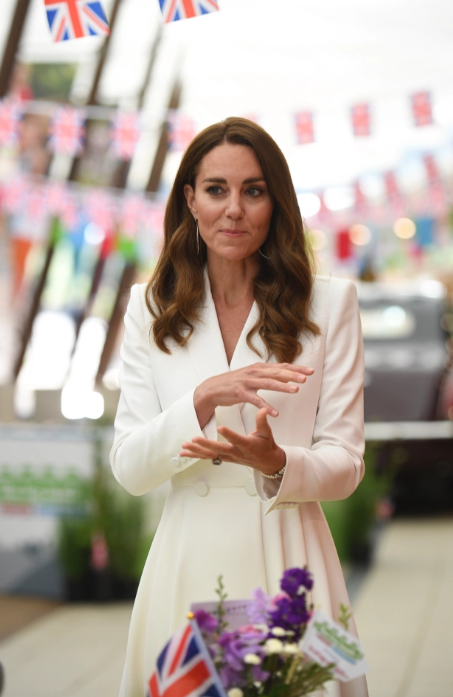 1. La duchesse a opté pour une robe manteau immaculée. Elle est encore une fois très élégante. Cependant, je pense qu’un joli chignon dont elle a le secret aurait le bien venu.