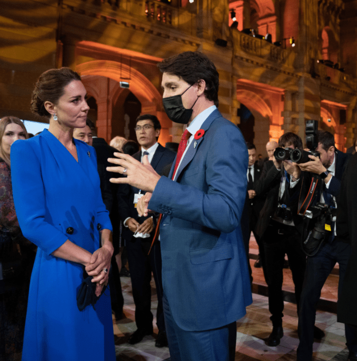1. Très bizarre cette réception… Entre les chefs d’état qui n’ont pas tous les mêmes règles anti-covid (Trudeau porte un masque et Kate non)… et ces mondanités qui semblent déplacées pour un sommet sur le climat.